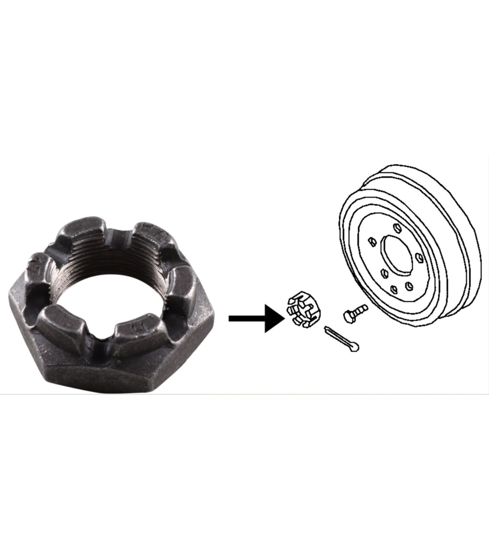 Nakrętka tylnej piasty 6 zębów, Bulik, Ogórek, Transporter T3 /T25 Castle nut for brake drum rear, 6 points, M30x1.5