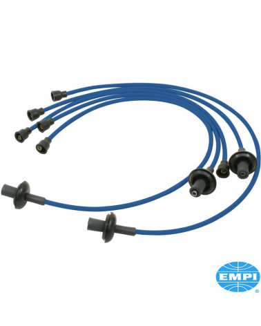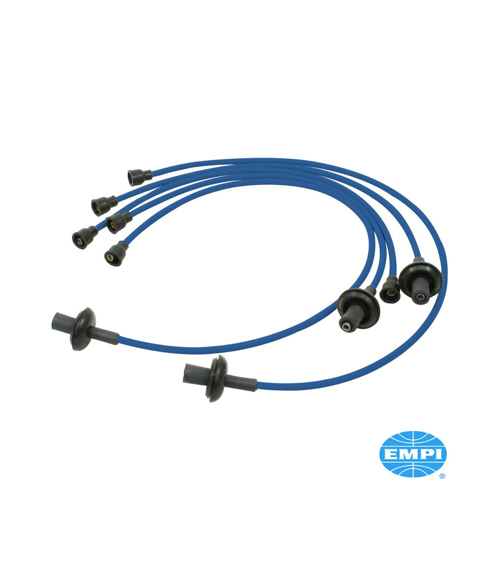 Zestaw przewodów W/N niebieskich do silnika 1200cc-1600cc w silikonowej osłonie, z miedzianym rdzeniem, najwyższa jakość producenta EMPI.
